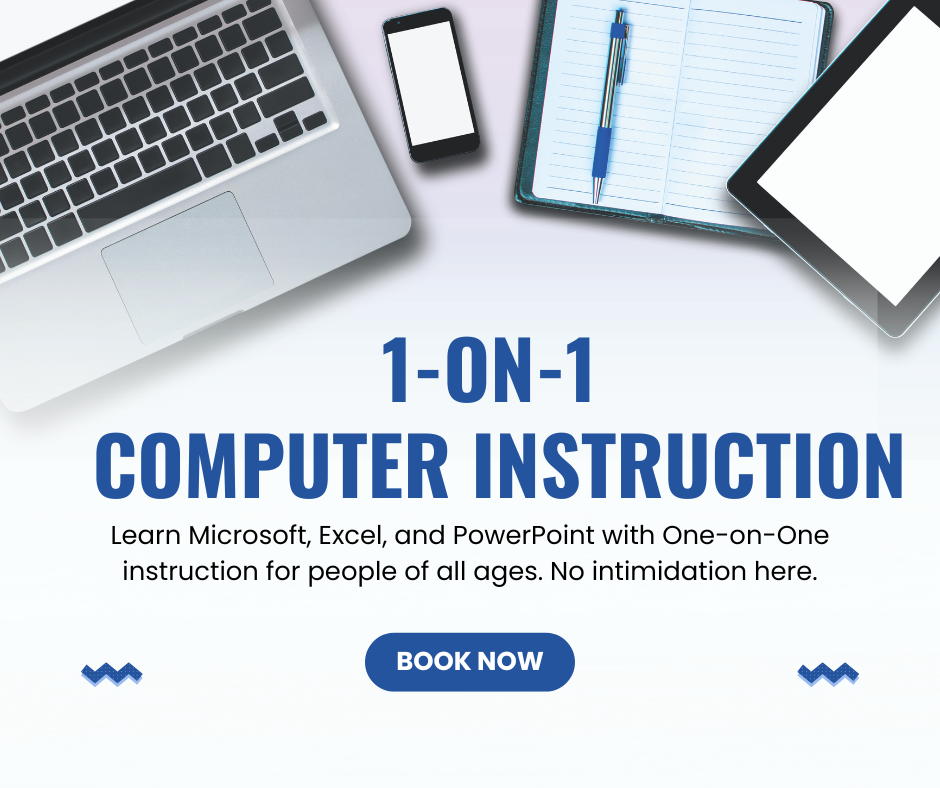Computer instruction provides practical, hands-on training designed to help individuals confidently use today’s essential technology. Through step-by-step guidance, students learn core computer skills such as navigating operating systems, using email and the internet, creating documents, managing files, and working with common software like Microsoft Word and Excel. Instruction is tailored to all skill levels, empowering learners to increase productivity, improve job readiness, and communicate more effectively in a digital world.